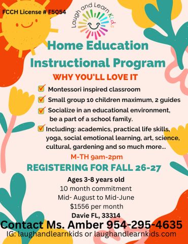 Our class meets M-Th between the hours of 915-145. Our children are 3-7 years old, preschoolers and homeschoolers. Class sizes are small with a maximum number 10 students with 2 teachers. All of our teachers are certified AMS Montessori educators and/or have Bachelors Degree in and educational field. Reach out to Ms. Amber for more information. We are a direct step-up provider.
